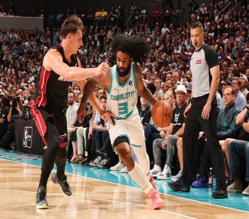北京时间4月15日,NBA附加赛黄蜂主场对阵热火,阿德巴约在第二节被三球绊倒导致下背部受伤退赛,热火上半场仅54-52领先黄蜂。热火在下半场逐步被黄蜂反超比分,末节热火率先一波17-2攻势反超比分,黄蜂随后持续反扑,怀特命中关键扳平三分,希罗绝杀三分不中。加时赛热火在落后情况下,希罗关键三分与反超三罚全中,三球上篮准绝杀,最终黄蜂127-126加时战胜热火晋级附加赛第二轮,黄蜂队史首次赢附加赛,将对决76人与魔术之间的败者争夺东部8号种子,热火出局无缘季后赛。