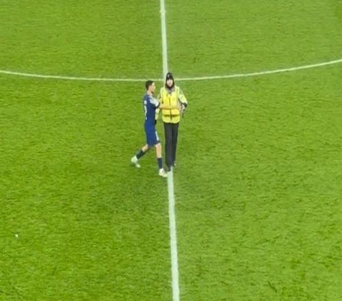 第一重越界:物理空间。他从客队看台区域取走队旗,穿越了主客队之间的缓冲地带。第二重越界:仪式符号。安菲尔德的中心圈是利物浦"你永远不会独行"精神的物理锚点,插旗行为被球迷解读为对俱乐部图腾的占领。第三重越界:时间窗口。安保第一次移除旗帜后,他夺回并再次展示——这不再是即兴庆祝,而是对对抗的主动延续。