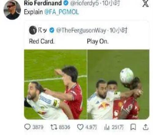 里奥要求英超裁判联盟对相关判罚做出解释